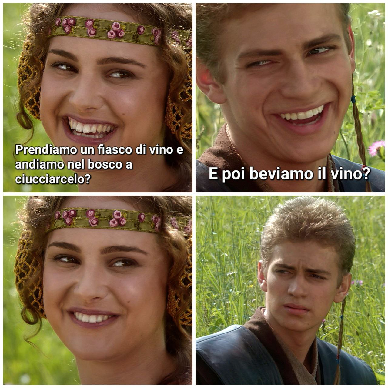 Ci prendiamo una bottiglia di vino, andiamo nel bosco e ce lo ciucciamo. E poi beviamo anche il vino.